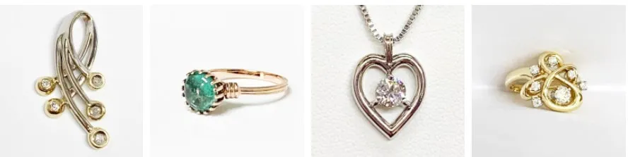 This includes: sterling silver, gold, white gold, rose gold, vermeil (gold over sterling silver), rings, pendants, necklaces, bangles, bracelets, pins, brooches, earrings, chains, cubic zirconia, diamonds, black hills gold, amethyst, ruby, opal, pearl, heart, garnet, emerald, sapphire, marcasite, citrine, onyx, turquoise, tri-color, designer, multi gemstones, gemstone, jade, tree of life, pink ice, tanzanite, and topaz!