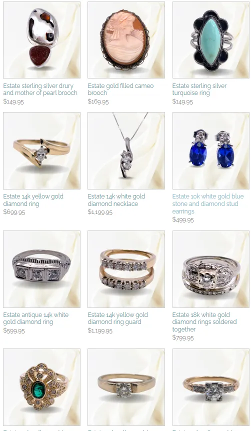 Now, if you don't have time to have a custom piece created, check out jewelry showcases which are regularly updated with new pieces. Here, you'll find beautiful and unique vintage and estate jewelry that has been restored and checked carefully to look new. Best of all, you can purchase it at a fraction of the cost of an original piece but still receive the same guarantee as our new jewelry!